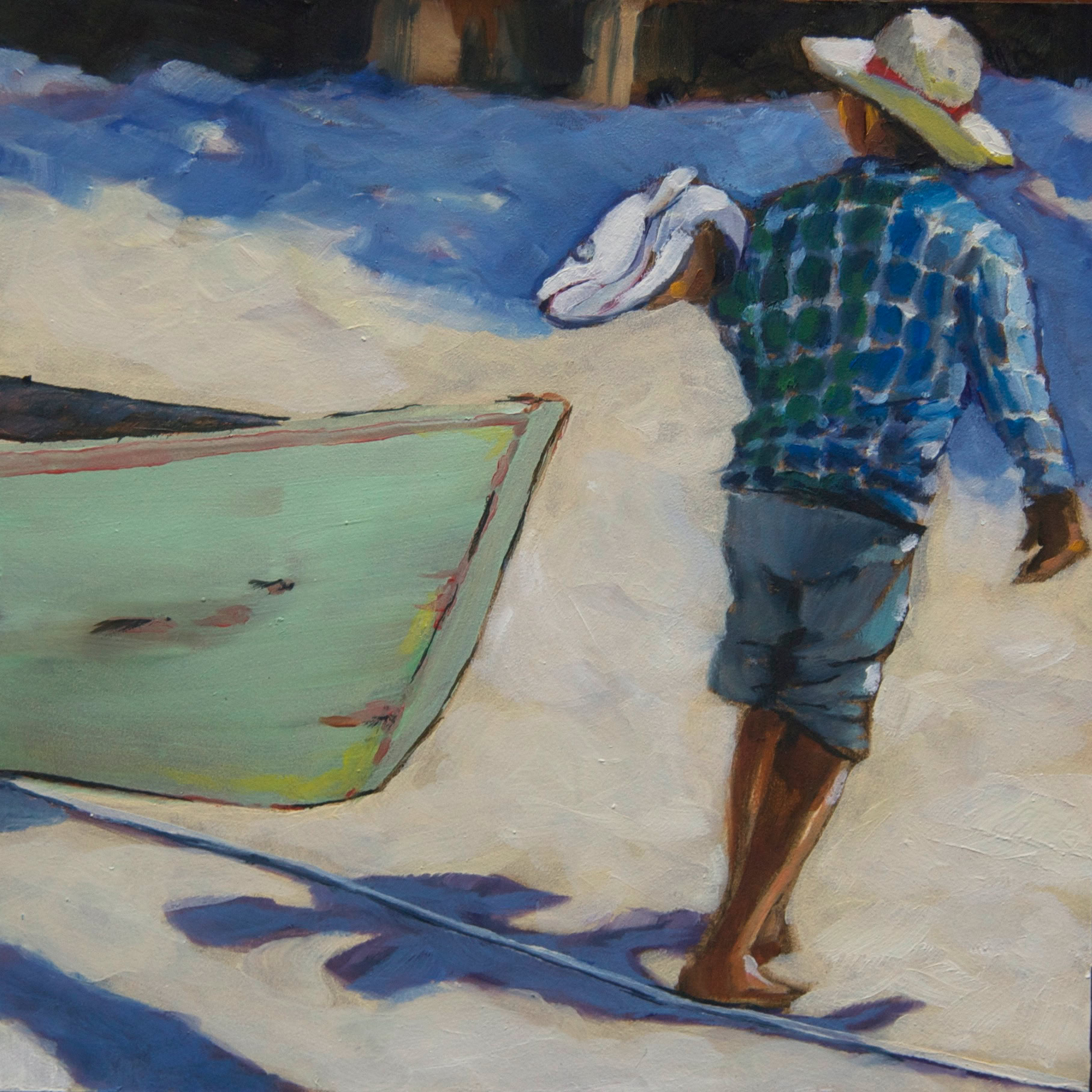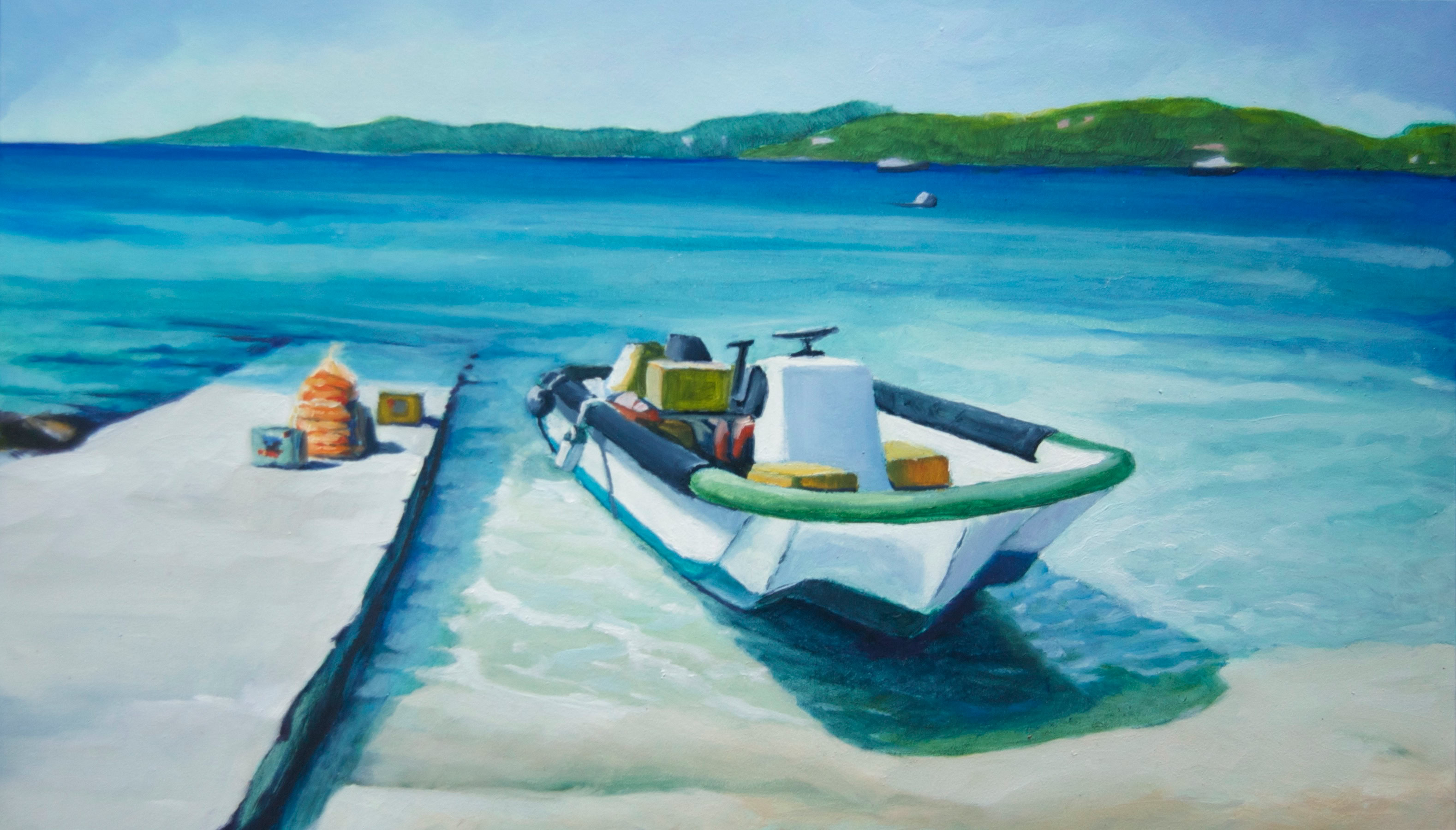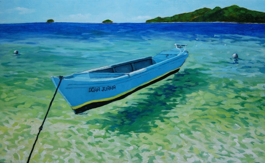 Cayos Cochinos Fishing Boat (2014), oil on board, 12x12 in