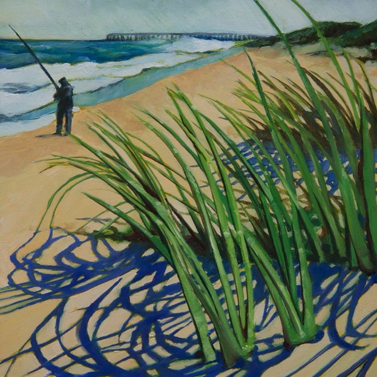Two Fisherman Avon Pier (2016), oil on board, 5x7 in SOLD