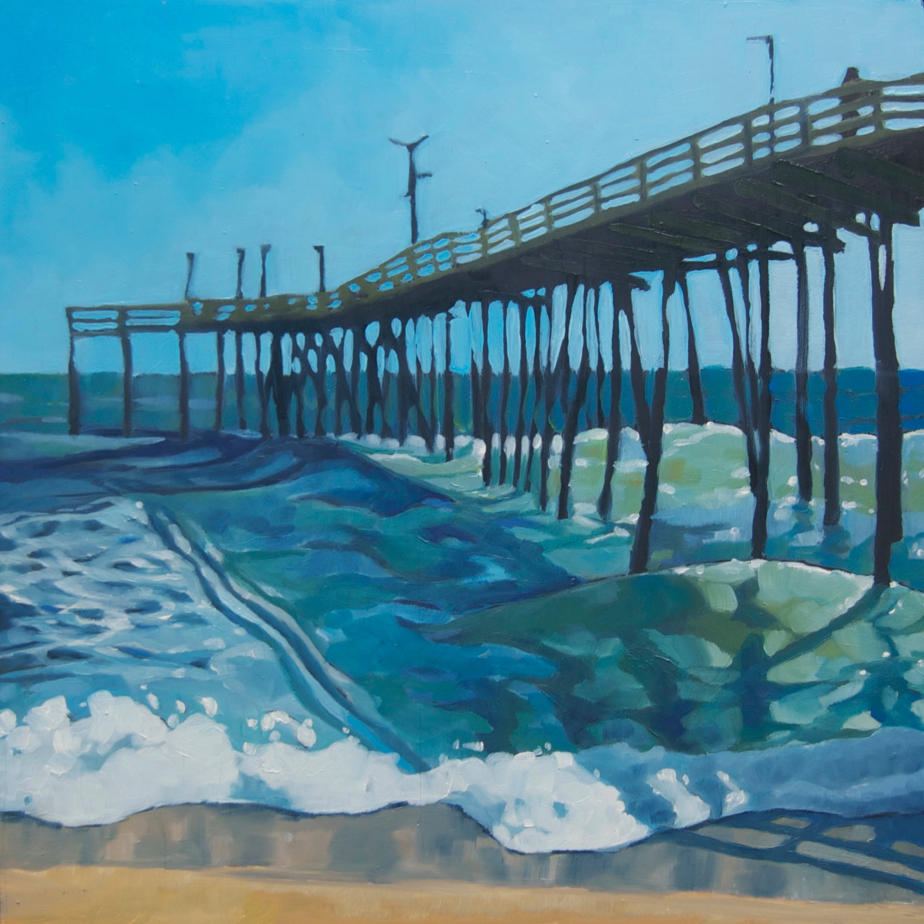 Ocean Swells Under Avon Pier (2014), oil on board, 10.5x10.5 in