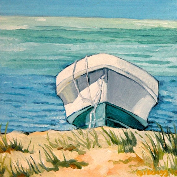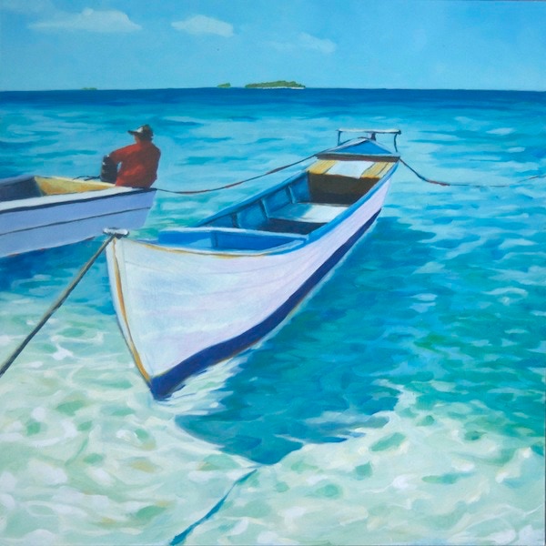 Cayos Cochinos Fishing Boat (2014), oil on board, 12x12 in