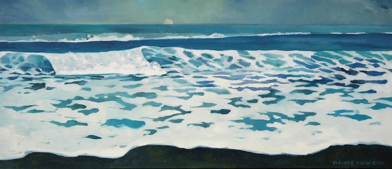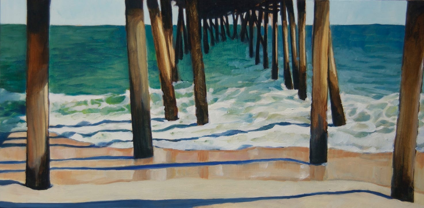 Ocean Swells Under Avon Pier (2014), oil on board, 10.5x10.5 in