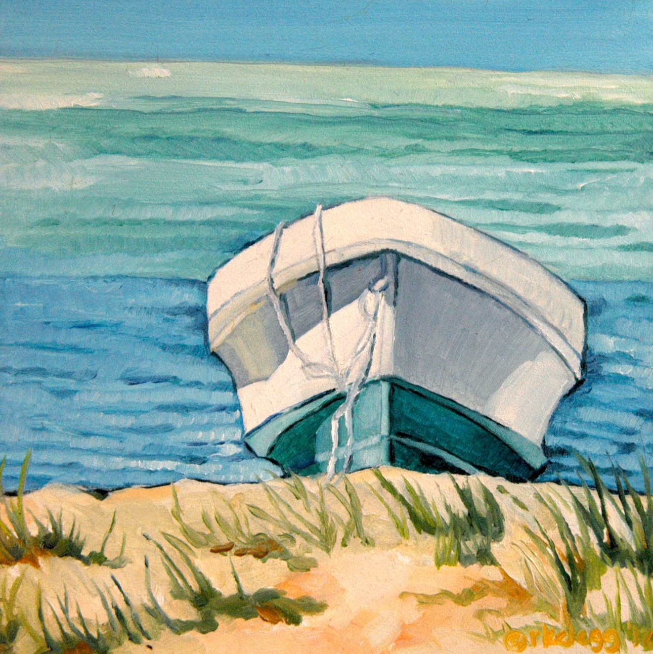 Dune Grass with Surf (2014), oil on board, 6x6 in
