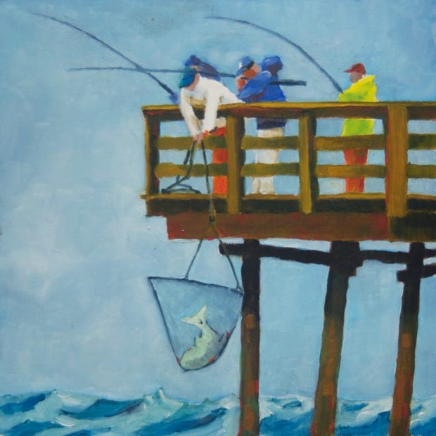 Afternoon at the Pier (2012), oil on board, 8x8 in